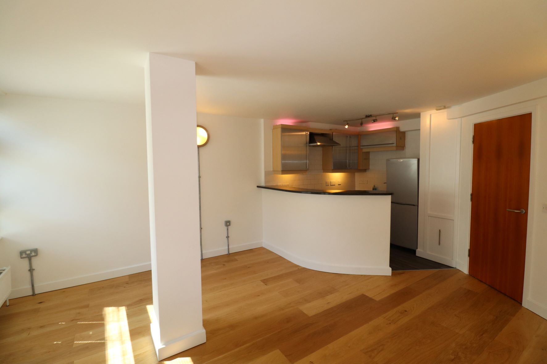 One bedroom loft style apartment located in the town centre, close to shops, restaurants, and leisure facilities. 2 minute walk to Northampton General Hospital and walking distance to the railway station. The apartment comprises of entrance hall, bathroom with shower over the bath, open plan living/dining/ kitchen. Appliances include a built in oven and hob, free standing washing machine/dryer and fridge/freezer. The bedroom has built in wardrobes. French doors in the living room and bedroom open onto a Juliette balcony. Sorry no pets. Not available for students. Viewings available Monday to Friday, 9 am to 5pm only.